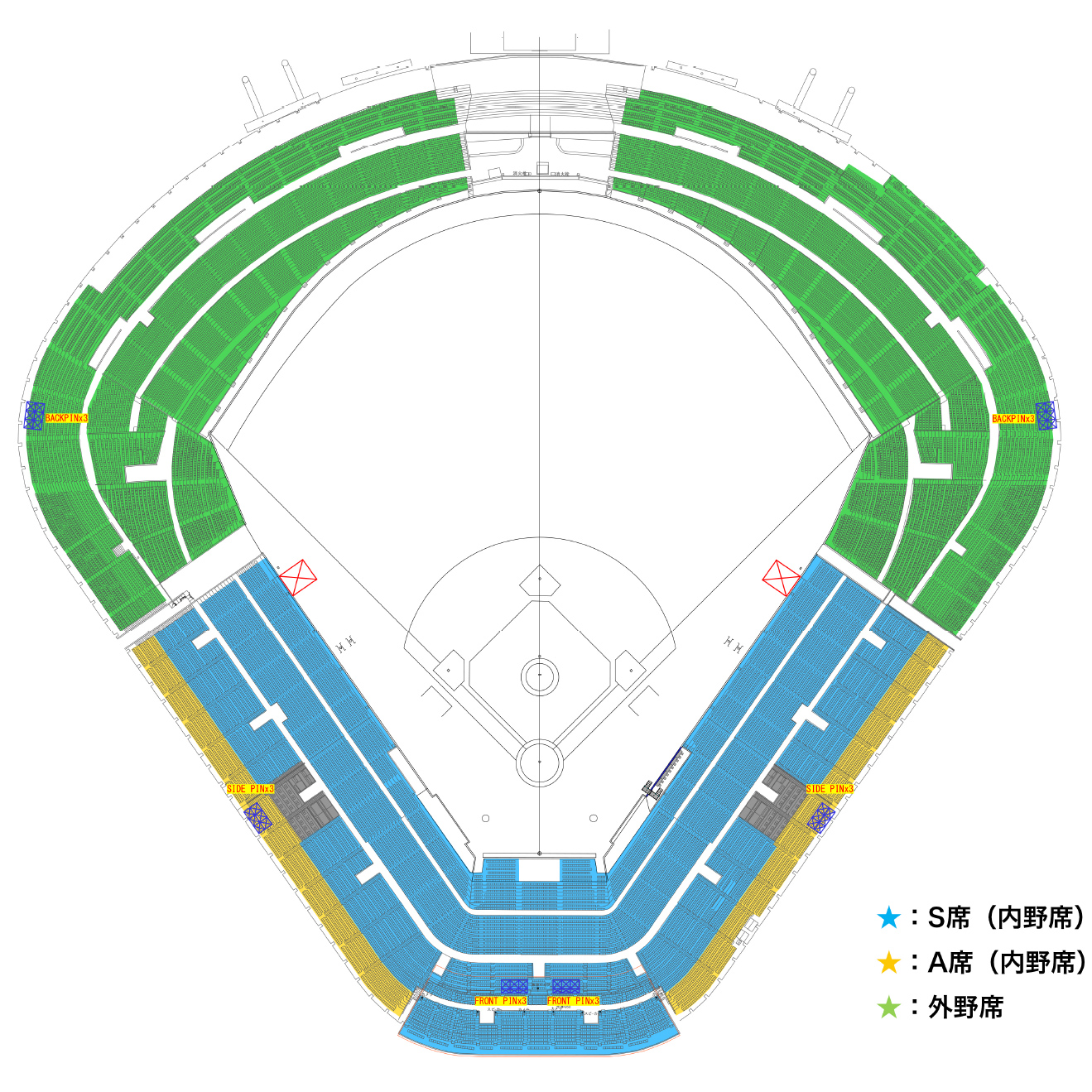 ★S席(内野席):16,400円【観戦チケット12,500円(全席指定)+配信チケット3,900円】